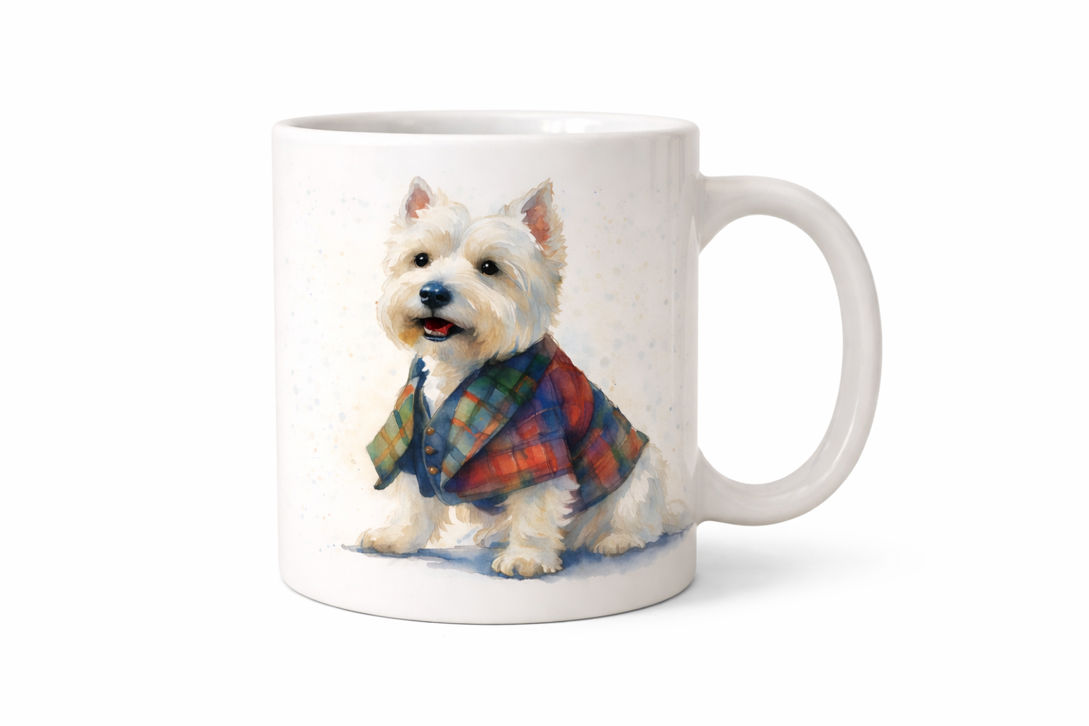 West Highland Terrier Mug – Scottish Westie in Tartan | 11oz Ceramic Mug